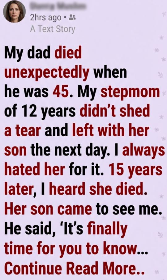 He took a deep breath. “The night your dad died… it wasn’t sudden for her.”