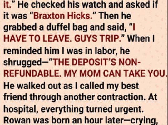 “Text me your contraction times,” she said. Her voice went flat and focused. “I’m leaving work right now. Do not drive. Do not wait for his mother.”