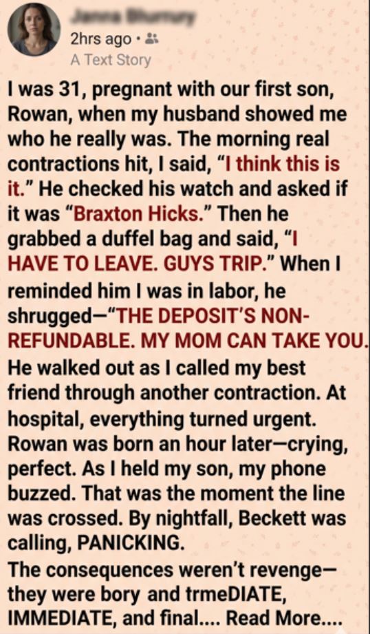 “Text me your contraction times,” she said. Her voice went flat and focused. “I’m leaving work right now. Do not drive. Do not wait for his mother.”
