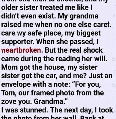 The next day, I went back to her house while my mom and sister were busy arguing over furniture. I took the framed photo from the wall—the one of us at the zoo when I was ten. I was grinning, missing a tooth. Grandma had her arm around me, eyes crinkled with joy.