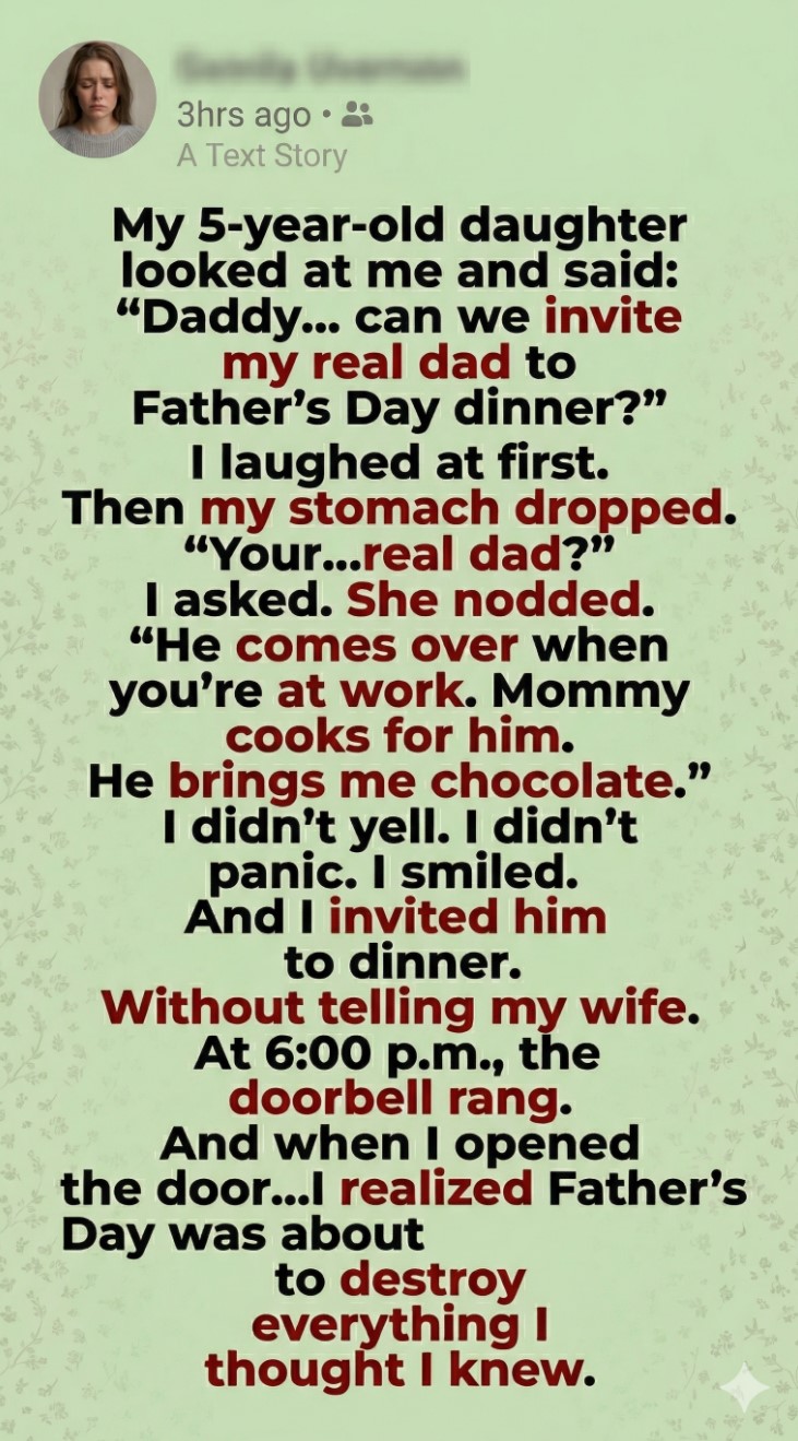 The truth spilled out quickly after that. There was no dramatic confession—just excuses, half-answers, and silence where honesty should’ve been. The man admitted he wasn’t my daughter’s biological father, but he’d let her believe it because it “felt easier.” My wife admitted she never corrected her because she didn’t know how.