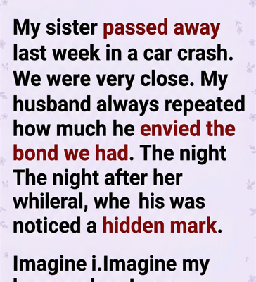 My sister passed away last week in a car crash. We were very close. My husband always repeated how much he envied the bond we had.