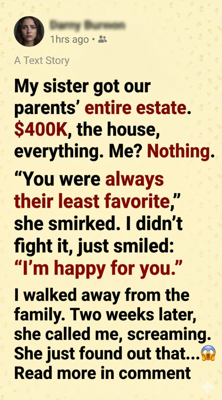 “The house… it’s mortgaged twice,” she continued, her voice shaking now. “The bank is already calling. And the ‘$400K’? It’s not cash—it’s tied up in some failing business Dad invested in before he died. I can’t even access it!”