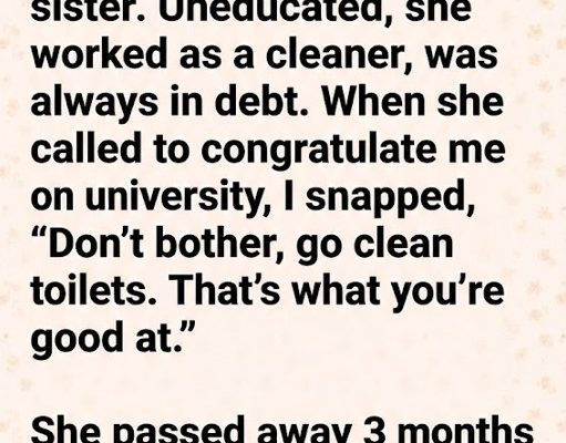 “Don’t bother,” I snapped. “Go clean toilets. That’s what you’re good at.”