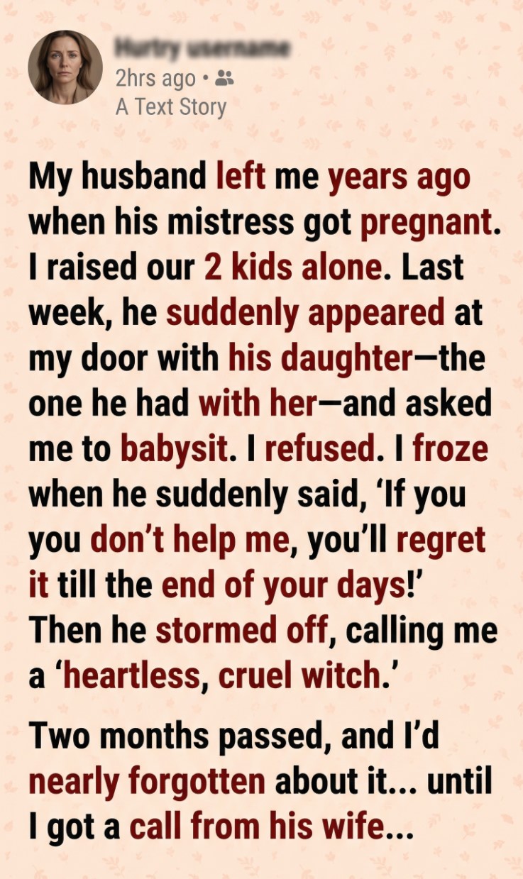 He abandoned his family, made threats when refused help—and now his new wife is calling with something unexpected.