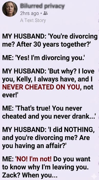 Kelly exhaled slowly, as if she had been holding her breath for years. “It means you were always… safe. Always careful. Always the same. You never hurt me, Zack. Not once. But you never saw me either.”