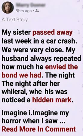 My sister passed away last week in a car crash. We were very close. My husband always repeated how much he envied the bond we had.