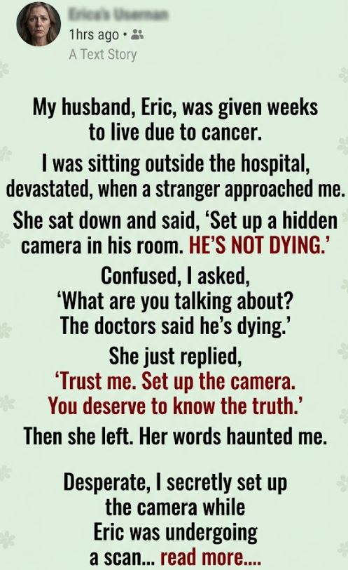 Her words haunted me. Desperate, I secretly set up the camera while Eric was undergoing a scan.