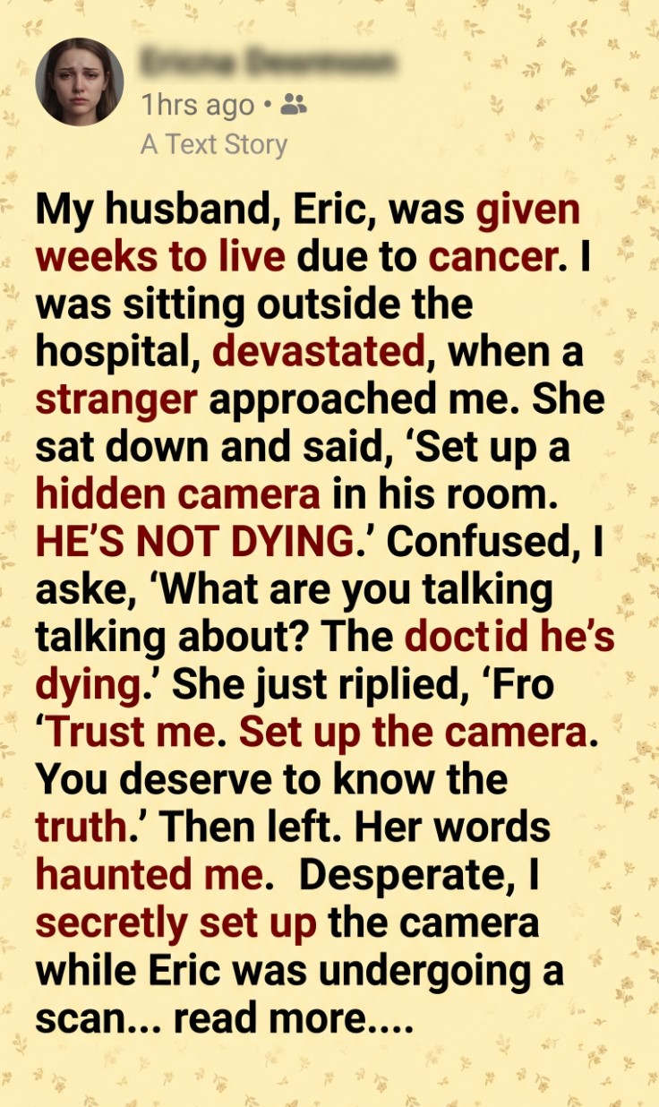 Her words haunted me. Desperate, I secretly set up the camera while Eric was undergoing a scan.