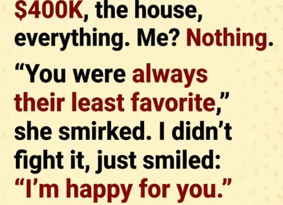 “The house… it’s mortgaged twice,” she continued, her voice shaking now. “The bank is already calling. And the ‘$400K’? It’s not cash—it’s tied up in some failing business Dad invested in before he died. I can’t even access it!”