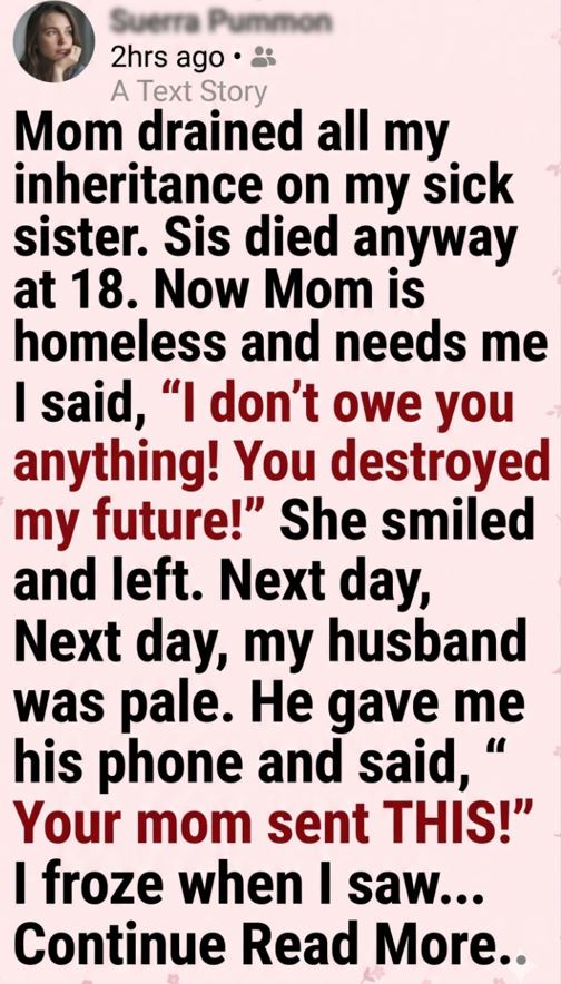 “She didn’t die back then. The doctors said she had a chance, a small one, but it meant long-term treatment. Expensive treatment.” Her voice cracked. “I used the inheritance to keep her alive. Every cent.”