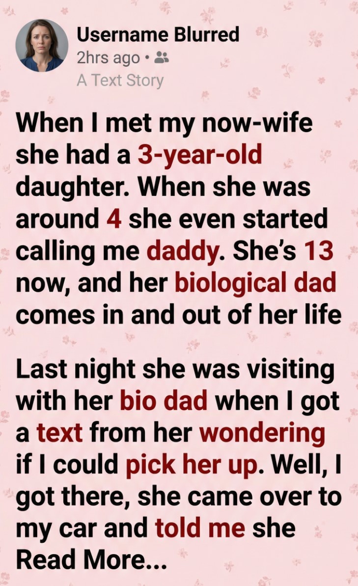 “He kept saying you’re not my real dad,” she whispered. “That I shouldn’t call you that.”