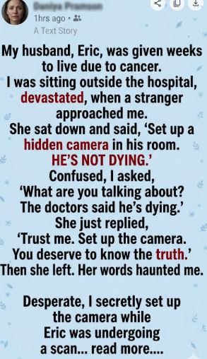 Her words haunted me. Desperate, I secretly set up the camera while Eric was undergoing a scan.